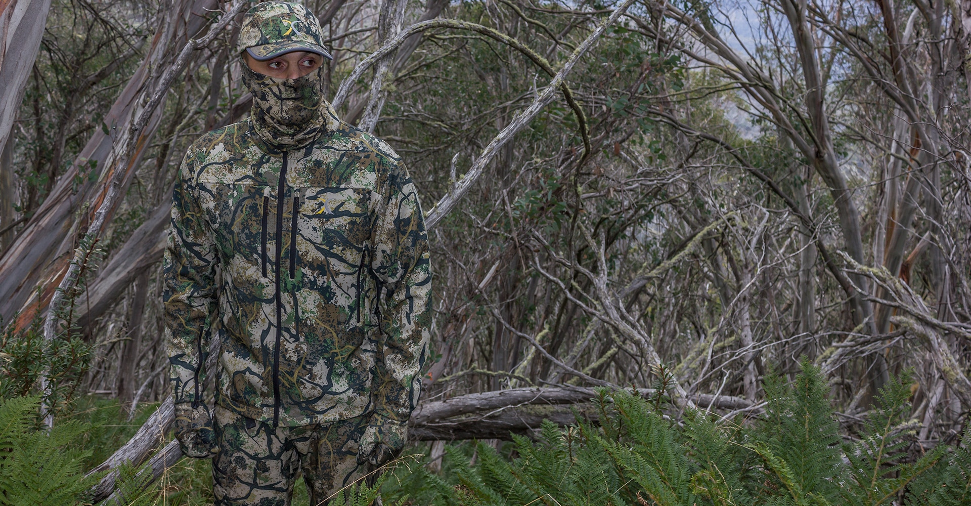 In creating Evade OmniVeil, our goal was to develop a total concealment camouflage solution for stalking hunters. A general-purpose multi terrain design that would benefit mobile hunters; who can often find themselves moving into different and varied surroundings during the course of a hunting day. We did not wish to link it to any specific habitat, thus also extending its versatility. From the outset it was our goal to develop a dual performance camouflage system, a concealment solution that could perform twin tasks. Blending capability to benefit hunters waiting in ambush, or within close vicinity hunting encounters. While also incorporating the ability to boundary disrupt the contour lines of a human silhouette to assist with none threat deception while stalking game.
